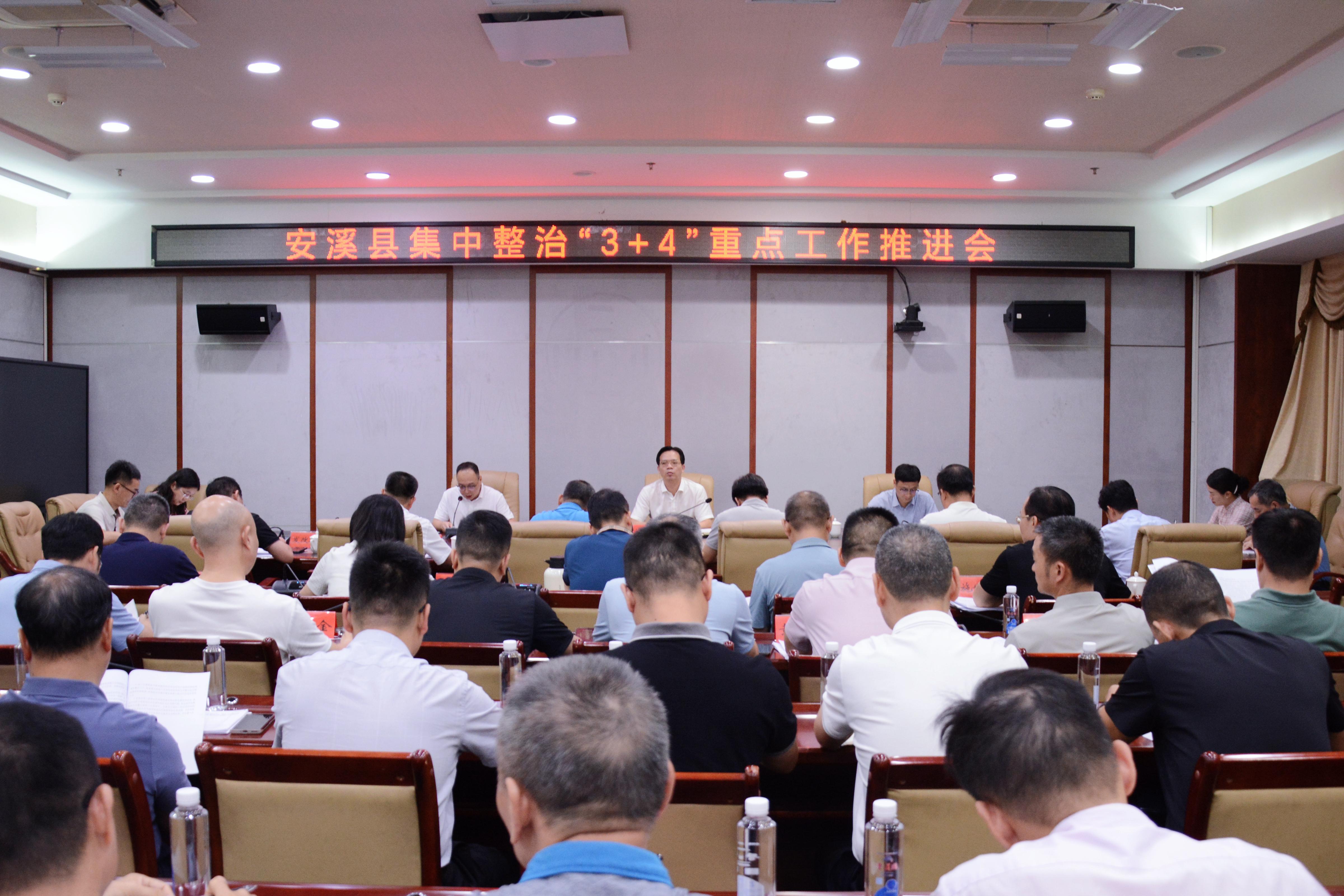 会议传达学习上级有关工作部署要求,盘点我县“3+4”重点专项工作进展情况,分析存在问题,部署下一阶段重点工作;县农业农村局、司法局、卫健局、安溪医保分局、民政局、文体旅局、发改局、财政局、工信商局、国企党工委等10个部门负责人依次对涉及的重点专项工作情况进行汇报。