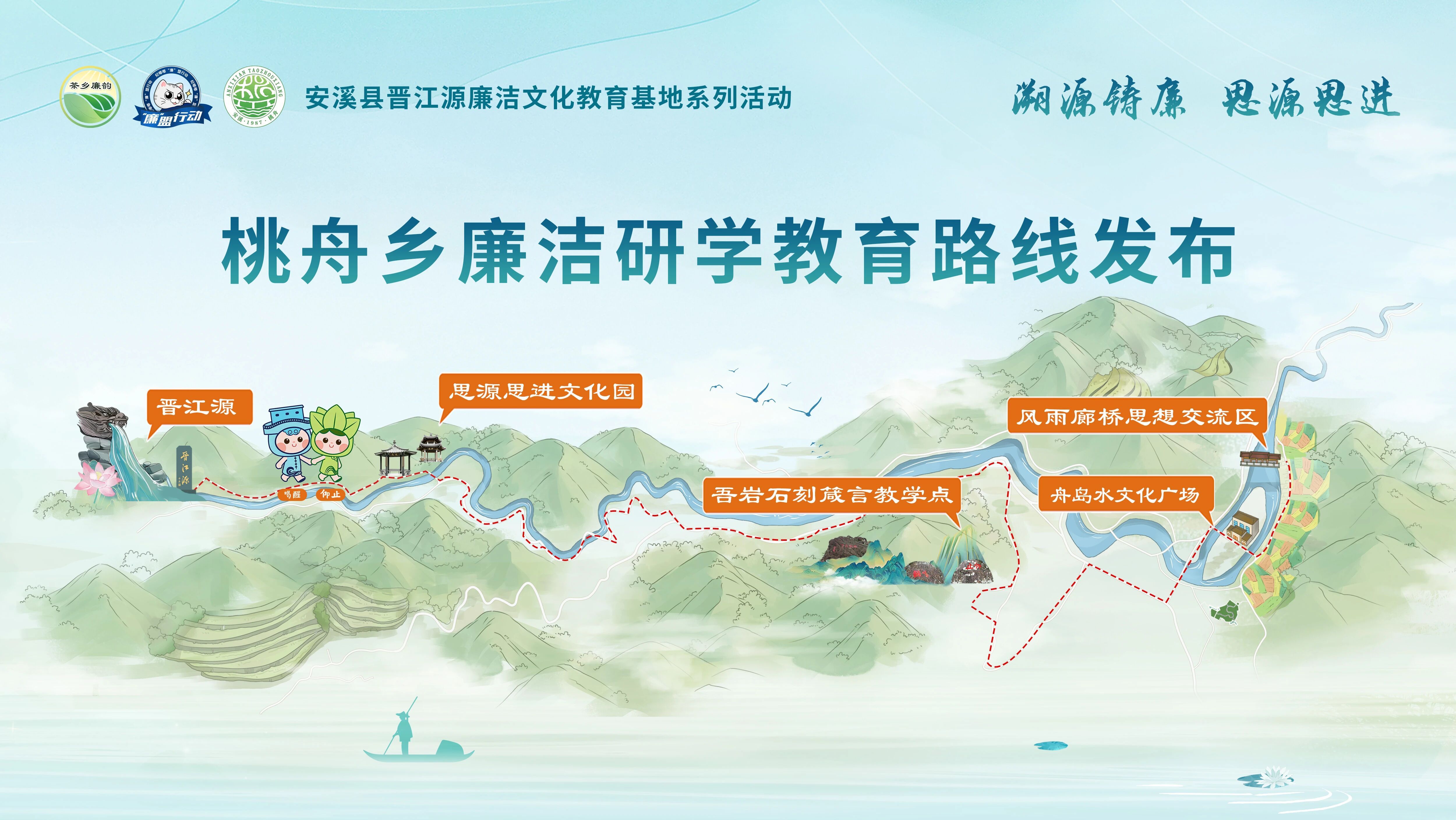 晋江源廉洁文化教育基地是2025年4月安溪县纪委监委联合桃舟乡党委、政府及有关部门打造的“以源护廉”安溪新时代廉洁文化IP品牌。该基地依托源头得天独厚的生态优势,融合“仰止、喝醒、风斯在下”的地域文化意象,已经成为茶乡大地廉洁教育的重要阵地,写入市纪委十三届六次全会报告作为重要工作进行部署。不到一年时间,先后有近200批次、4000余名党员干部前来研学践廉。